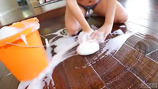 Молодая хозяюшка вместо уборки решила заняться еблей с чуваком