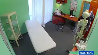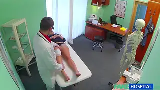 Красивую блондинку доктор развел на секс и кончил на большие сиськи