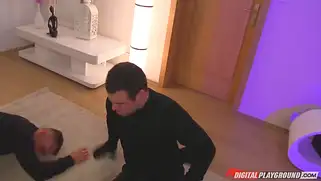 Дружеский секс как способ помочь приятелю в глубоком минете с камшотом в ротик