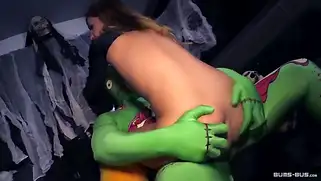 Парни в костюмах будут ебать одну телочку во время дрочки