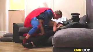 Групповое порно, где коп нарядился в бетмена, а друг в супермена