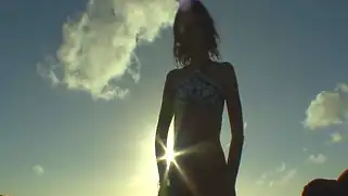 Девушка зашла в море и начала там массировать киску прямо в воде