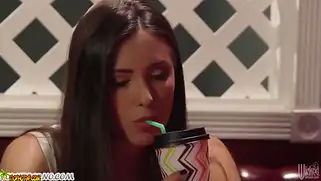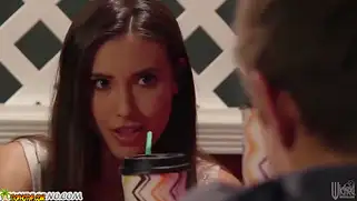 Молодой ебарь выплескивает сперму на лицо грудастой любовницы