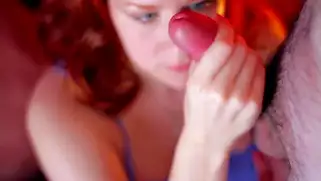 Home Porn - Когда в финальной части классного минета мужик кончил на рыжеволосую телочку, девушка не бросает сосать член и нежно ласкает балду партнера лукавым язычком