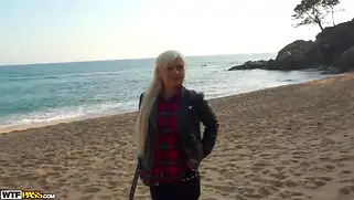 Парни нашли на улице давалку и отебли её в рот и киску на пляже