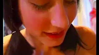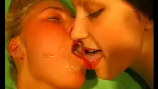Мужики толпой трахают лебиянок и приучают телочек к сперме