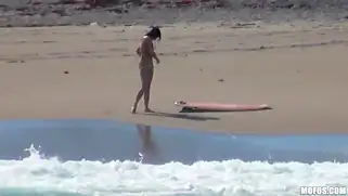 После купания в море брюнетке вдули в пизду и кончили на лицо