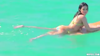 Секс в море на доске для серфинга от молодой игривой сучки с бойфрендом