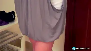 Порно видео Мастурбация, Трах - Жирная и сисястая шкура переоделась и убралась в комнате. После работы она раздевается и начинает трогать себя за сиськи и дрочить письку. Она кончает от мастурбации.