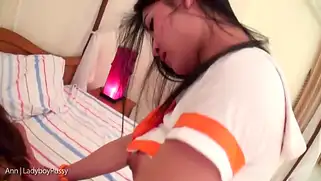 Транс с членом и транс с пиздой забавно трахаются на кровати