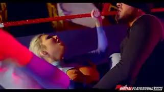 На порно ринге мужик с завязанными глазами ебет грудастую бабу