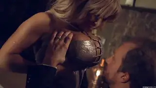 Порно видео Кремпай, Большими сиськами - Зрелая блондинка с большими силиконовыми сиськами ебется с мужиком в страстном стиле, шалава с радостью сосет огромный хуй парня, мужик кончает в пизду