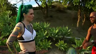 Лысый негр с дружками смачно ебет белую горячую милфу, устроившую оргию
