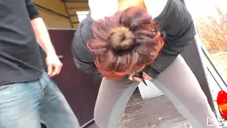 Худенькой Ольге попку спермой заливает после траха на природе у машины
