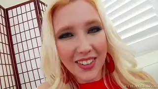 Сняв красные трусики, телка получает суровый и хардкорный анал