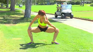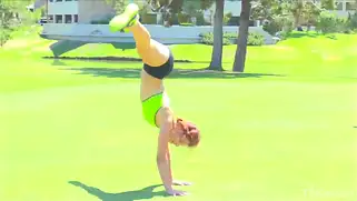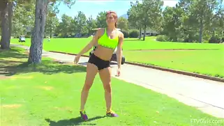Порно видео Молодые, С сиськами - После утренней пробежки молодая сучка с неплохими сиськами показывает титьки в камеру, а затем оголяет пизду и сверкает киской перед посадкой на шпагат