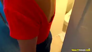 Милашка с улицы пошла с парнем сосать в туалет и ебаться в отеле