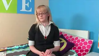 Порно видео Минет, Молодая дрочит - Молодая белокурая дурнушка в очках и гольфах хотела подрочить на фото знаменитостей из журнала, но поеблась с парнем, который зашел в комнату красотки