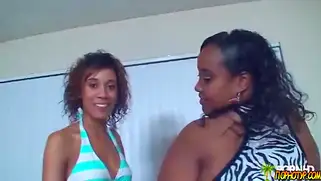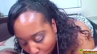 Жирная и худая негритянка отсасывают вдвоем член белому парню