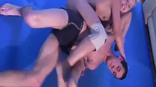 Порно видео Кунилингус, - Во время упорной борьбы худощавый мужик в трусах проиграл голой бабе в наколеннике, девушке удалось сесть на лицо самца и мужик полизал киску победительницы
