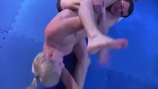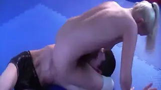 Во время борьбы парню пришлось полизать киску симпатичной блонды