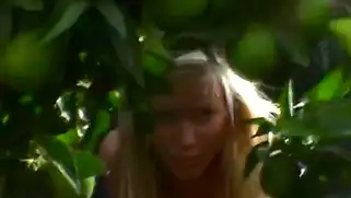 Порно видео Молодые, - Белокурая голая красавица с крепкими натуральными сиськами красивой формы прогуливается по цветущему саду полностью обнаженная и улыбается поклонникам