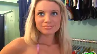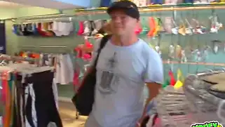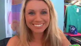 В магазине нижнего белья смазливая блондинка ебется за деньги
