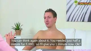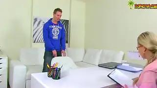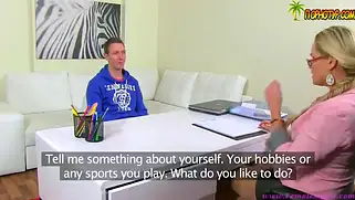 Блондинка в чулках и нижнем белье заставила парня себя трахнуть