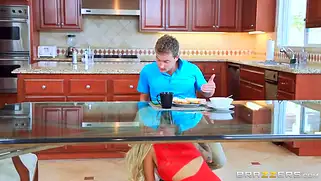 Голубоглазая блондинка с отличной задницей классно прыгает писькой на члене