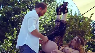 Стеллу поставили раком и глубоко засовывают большой член в попу