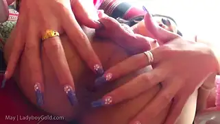 Азиатская транс телочка кончает от одновременной дрочки жопы и члена