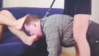 Retro Models - Две молодые русские госпожи развлекаются с послушным рабом в ошейнике на цепочке, красотки меняют друг друга в кресле, а мужик с наслаждением лижет пальцы