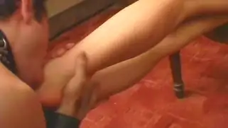 Порно видео Кунилингус, Белье - Русская госпожа блондинка в кожаном белье отшлепала послушного парня по жопе и разрешила полизать киску, мужик лизал сладкие дырочки бляди спереди и сзади