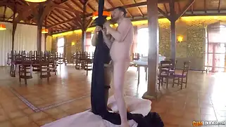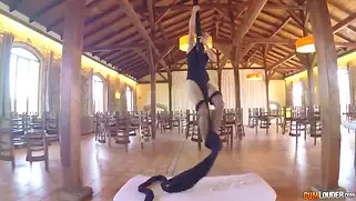 После тренировок акробатку трахает в киску тренер и кончает в рот