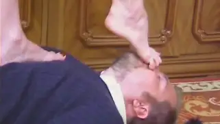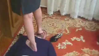 Порно видео Зрелые, Русский трах - Русская бандитка в красной кофточке наставляет на парня пистолет и становится на грудь мужика, а потом предлагает фетишисту полизать ножки и делает рабом