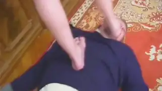 Старикашка трахнул попку и пизду высокой молодой блондиночки на диване