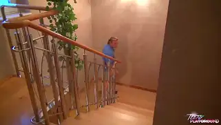 Мужик на кухне снял трусики с девушки и трахнул в киску и ротик