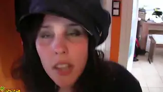 Полицейская в фуражке и наручниках подставляет очко бандиту