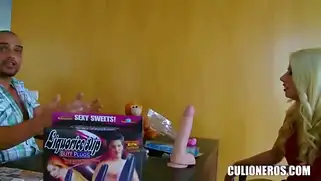 Мужик кончает на нос девушке после того, как трахнул в попку