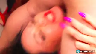 Белая потаскушка в чулочках встречает Новый Год безумной порно оргией