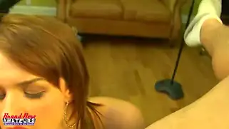Кудрявая потаскушка демонстрирует роскошный минет с глубоким заглотом