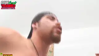 Жгучая баба транс вафлит мужика в бейсболке и дает в очко
