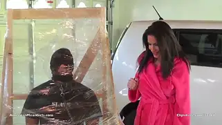 Грязная потаскушка с БДСМ наклонностями с кляпом во рту хочет трахаться ночью