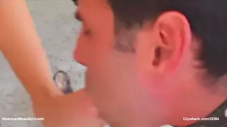 Очаровательная куколка в чулочках классно сосет хуй в туалете и стонет от траха