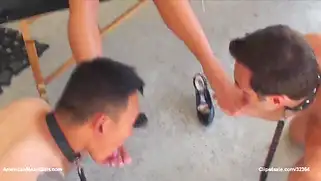 Рабы выползают из клеток чтобы лизать стройные ноги госпожи