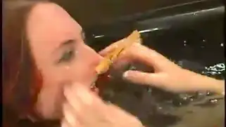 Порно видео БДСМ / BDSM, Дрочит - Смазливая белокурая телка забавляется с рыжеволосой красоткой, связывает подругу по рукам и ногам, а затем садится в бадью вместе с сучкой и дрочит киску