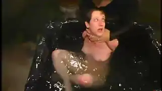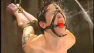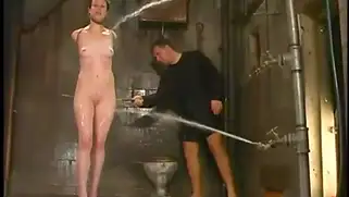 Бабу ебут в пизду палкой с насадкой и льют воду на тело бляди