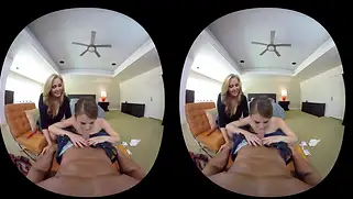 Порно видео Групповуха, Молодая - Молодая телочка решила трахнуться с парнем от первого лица и пригласила на еблю зрелую помощницу, которая советует сучке как правильно садиться на член