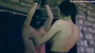 Порно видео БДСМ / BDSM, Показала сиськи - Молодая русская домина показала сиськи всем желающим и стала развлекаться с рабом разнообразными способами, в комнате на стройке сучка привязала мужика