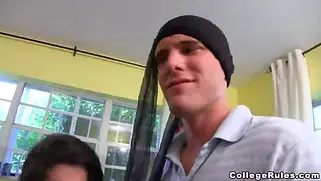 Порно видео Групповуха, Лесби секс - Молодые парни прокрались в общагу к симпатичным студенткам, красотки были не прочь потрахаться и началась классная групповушка с лесби сексом и камшотами